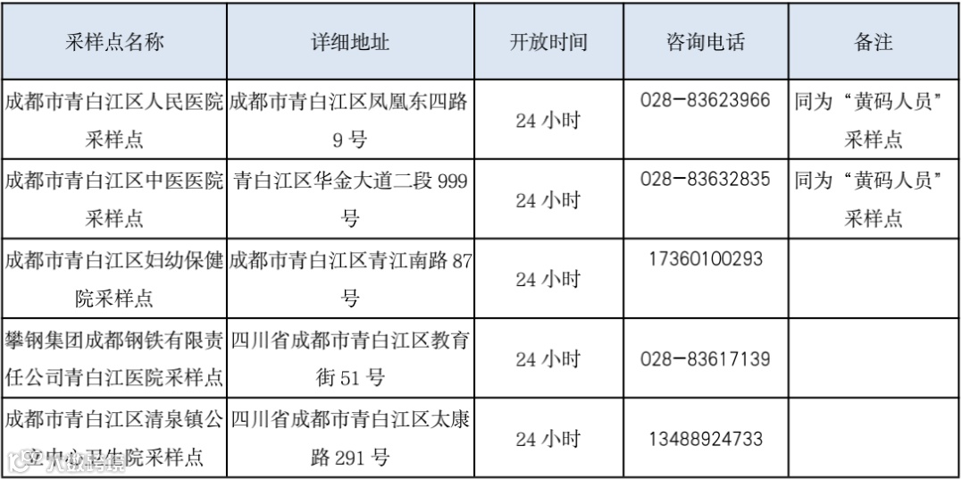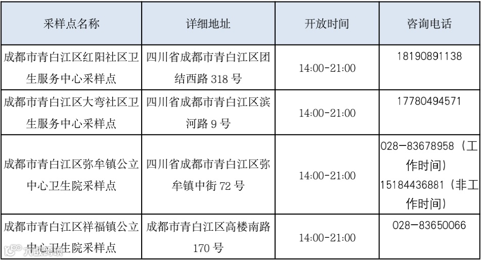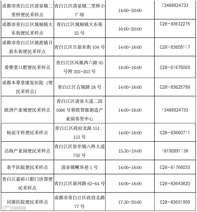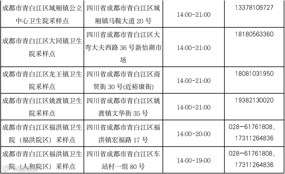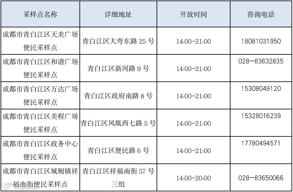 10月7日青白江区常态化核酸检测点位表