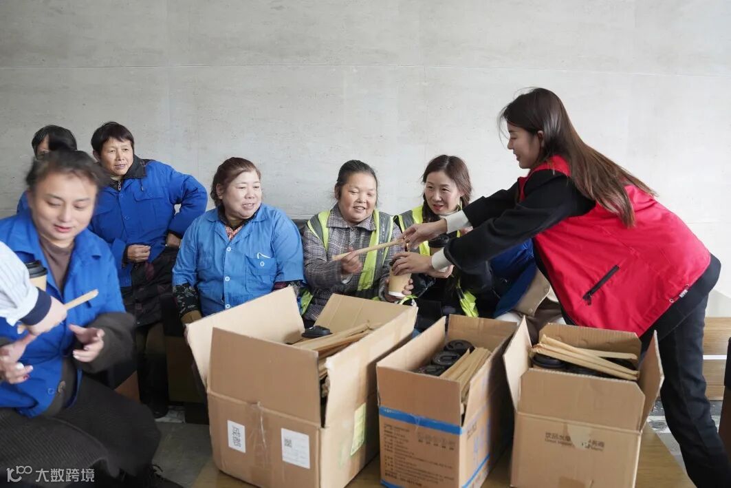 向园区200余名一线工作者发放暖冬饮品