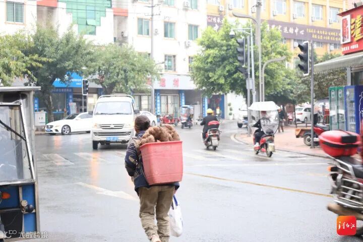 周婆婆背着装满脚板芍的背篼,满面笑容地走下车