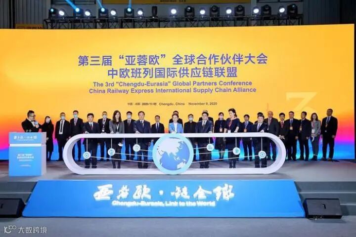 2020年1月19日、11月9日,一年内成功举办两场全球合作伙伴大会,成立“一带一路”产业园区联盟、中欧班列国际供应链联盟,进一步提升了青白江作为泛欧泛亚国际门户枢纽城市在全球的影响力。