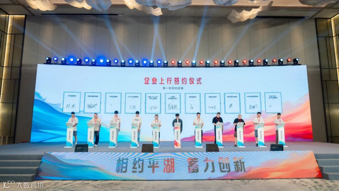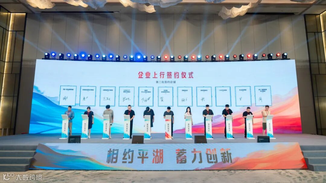 平湖时尚产业带企业代表与京东平台签约合作,签约企业代表平湖·中国服装城上台发言。