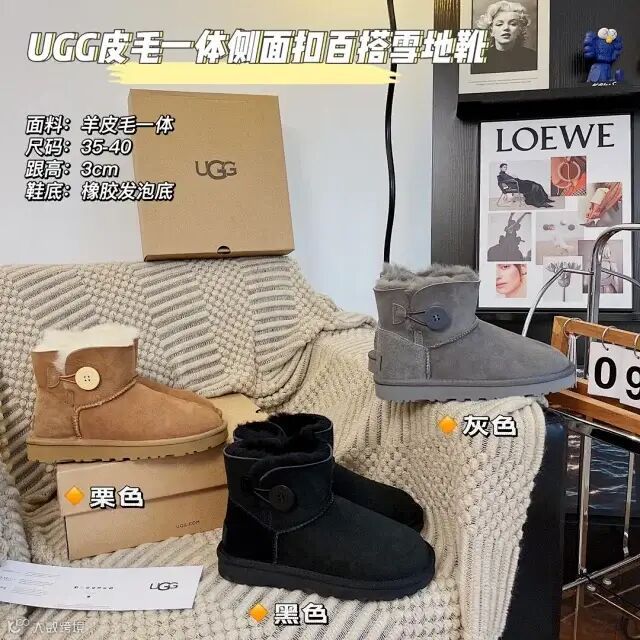 皮毛一体𝗨/𝗚 一粒扣,经典羊皮毛一体休闲百搭雪地靴~