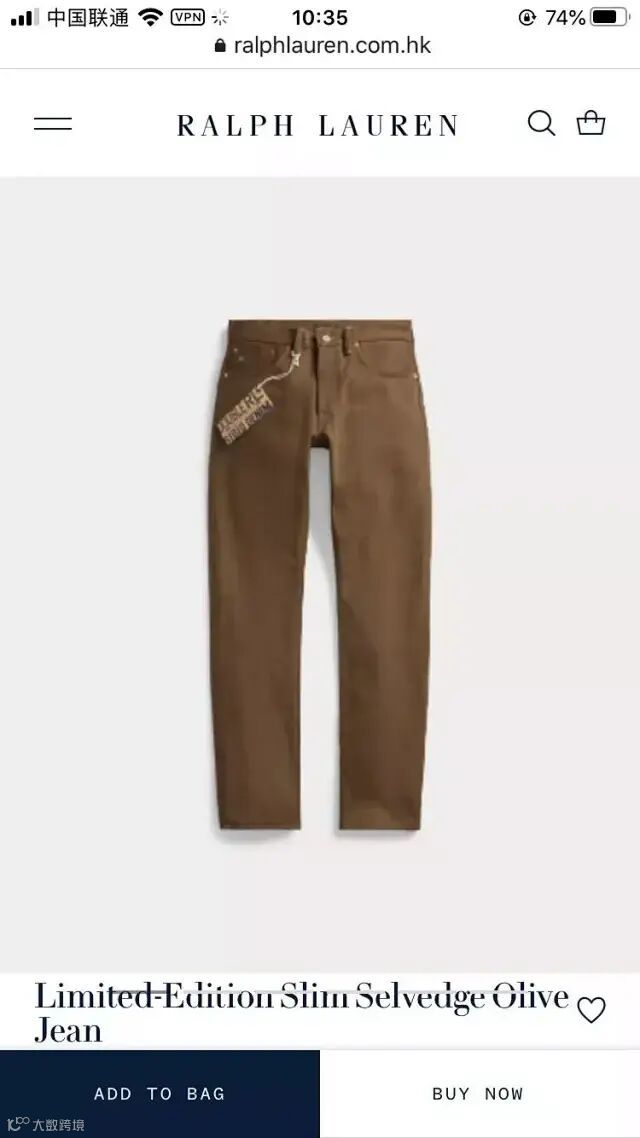 细节也在后袋被实施不是本家的弧线形缝纫的RRL特有的缝纫,