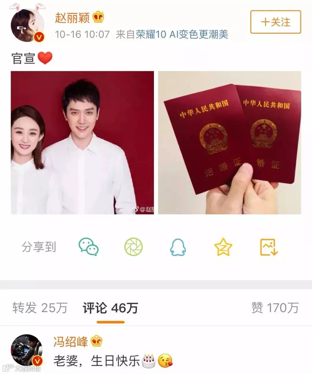 ▲众所周知今年10月,本剧的两位男女主官宣结婚。
