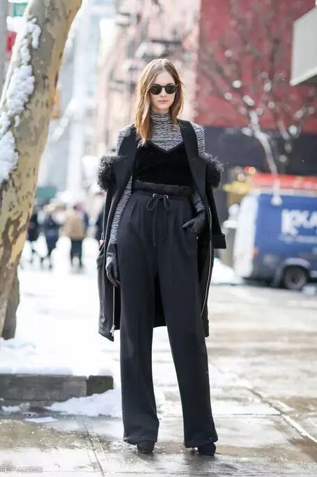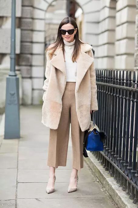 如果觉得自己腿上有肉而不愿穿紧身裤,那就选择阔腿裤吧!阔腿裤不仅显腿瘦而且显高,宽阔的裤腿能对比出纤瘦的腰身,稍短些的款式修饰效果最佳,穿出好比例还能气场十足。