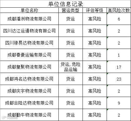 对我区8月份9家高风险运输企业