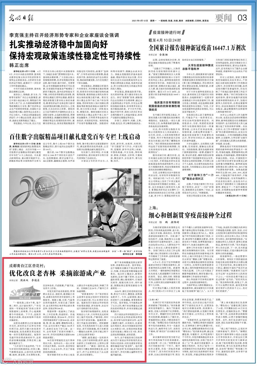 2021年4月12日,光明日报【奋斗百年路 启航新征程·同心奔小康】栏目特别报道