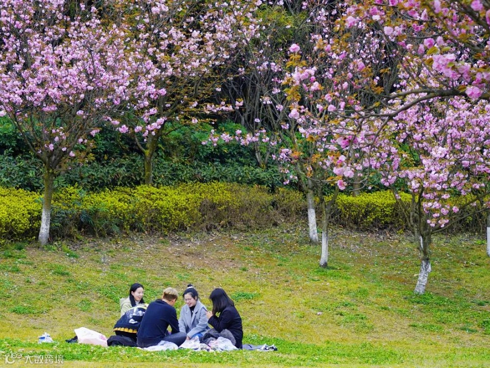 樱花烂漫的凤凰湖吸引着五湖四海的游客