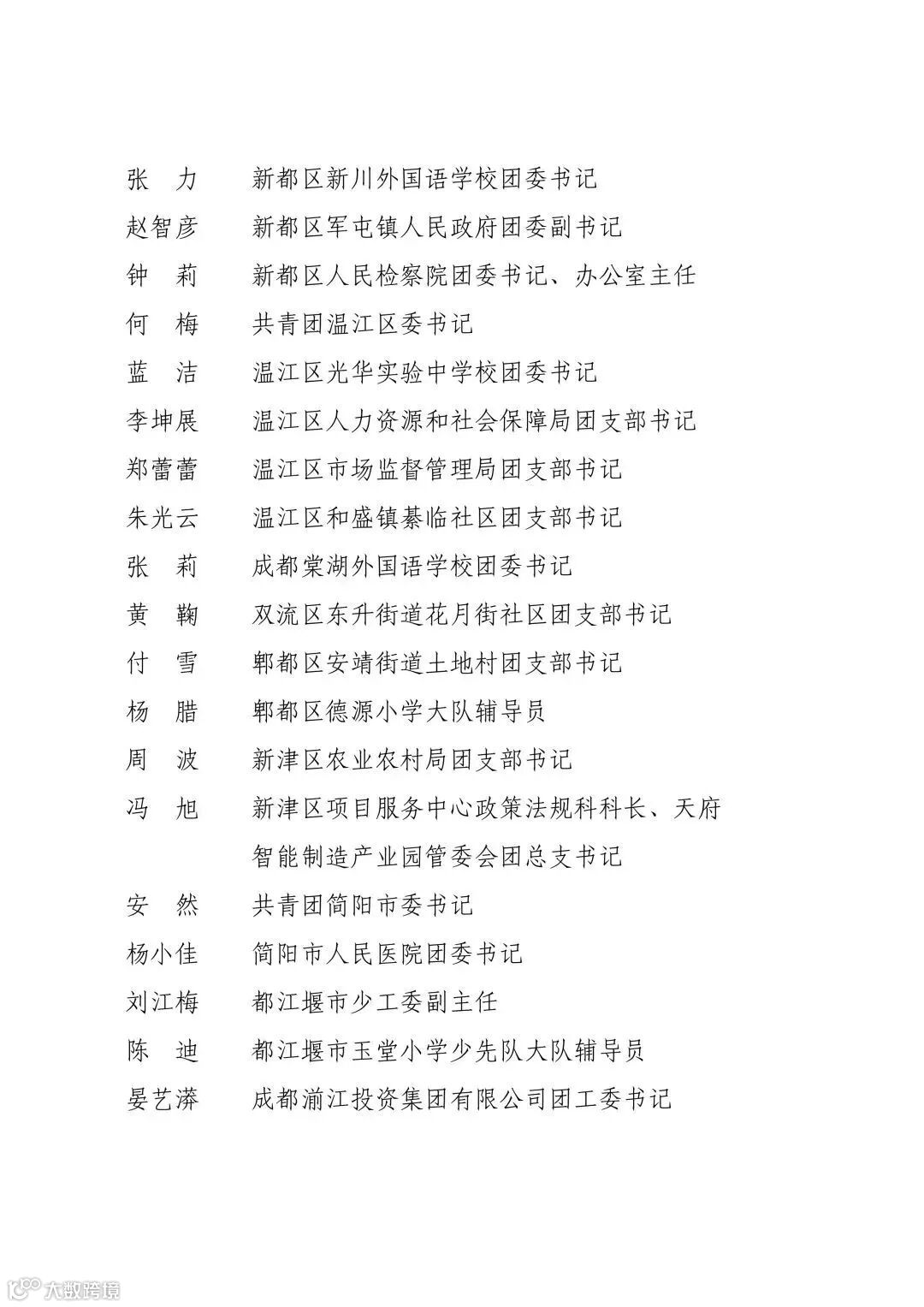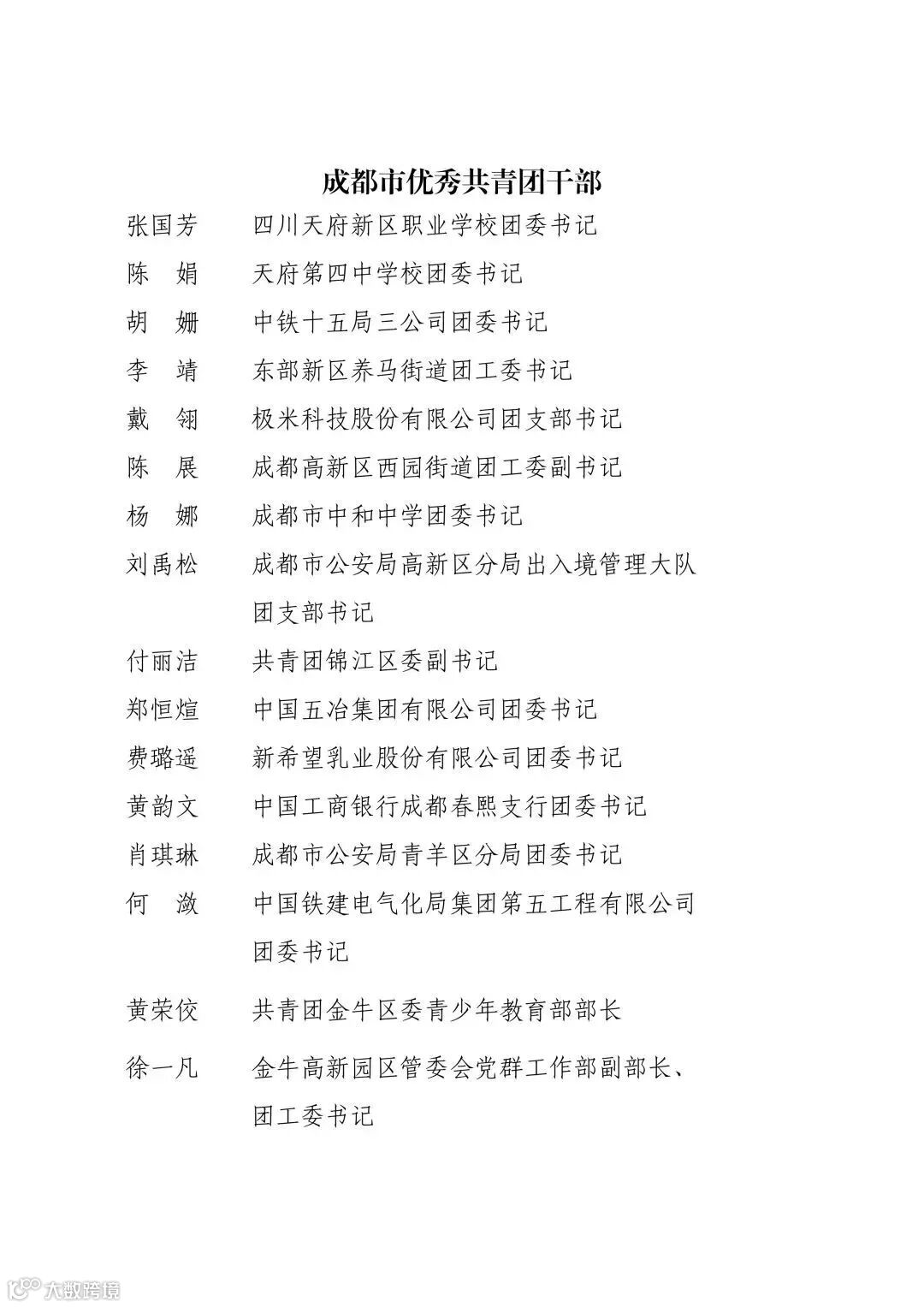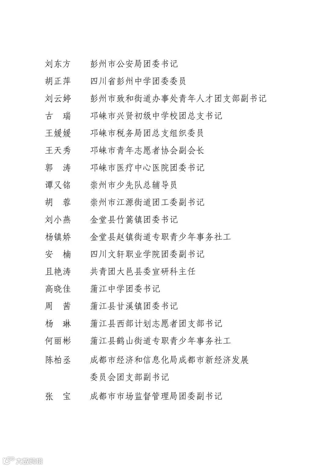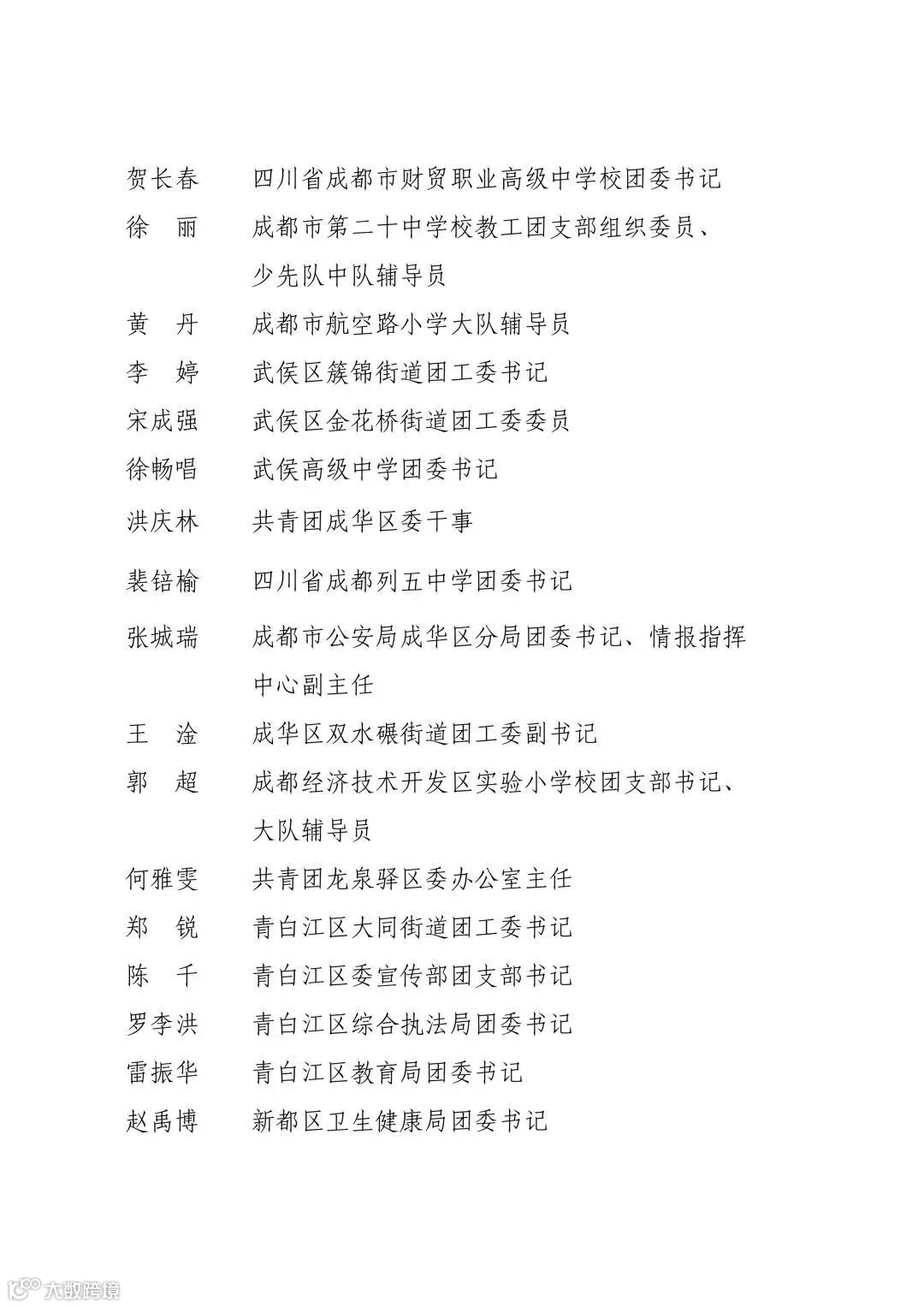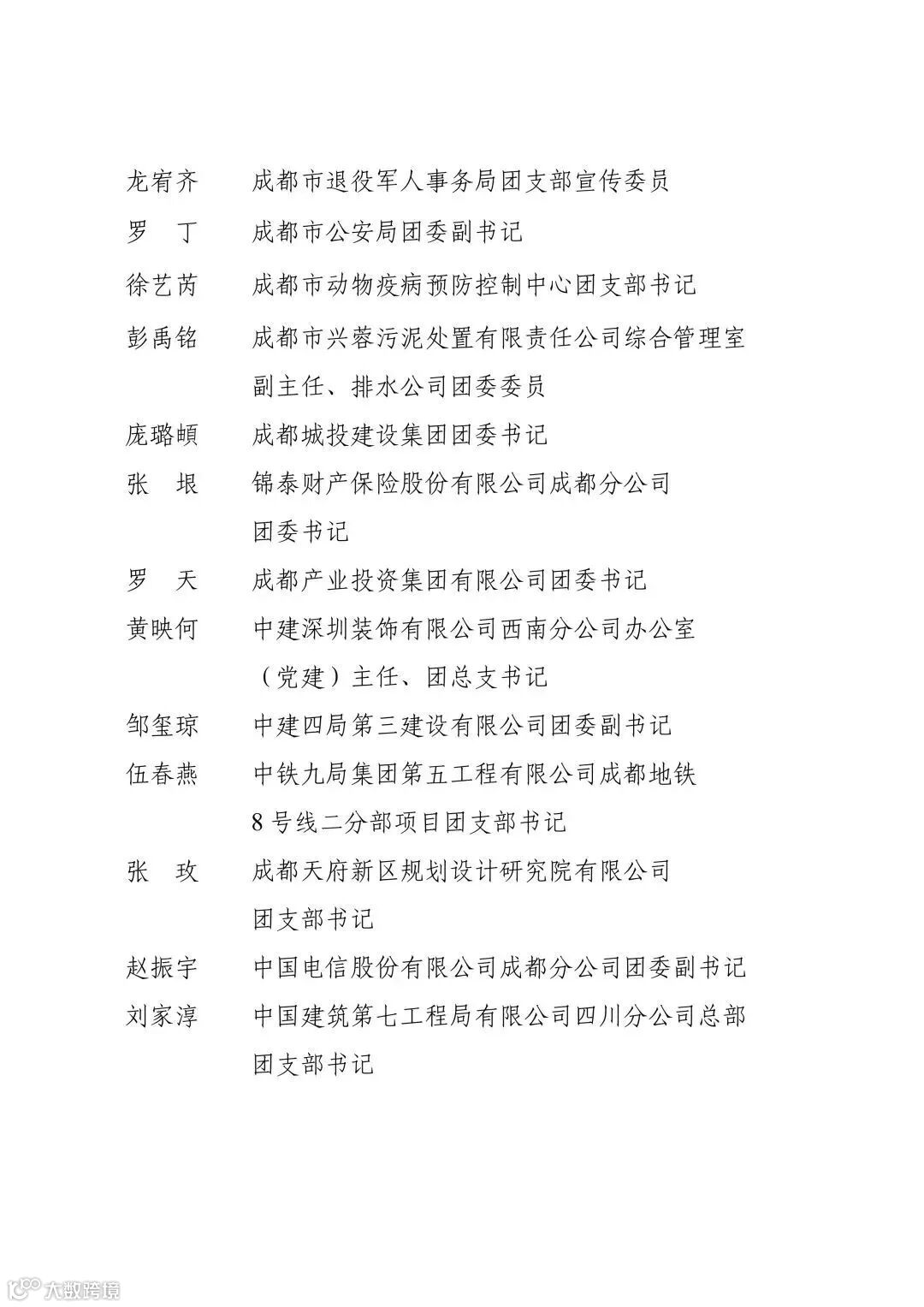 成都市优秀共青团员、共青团干部名单