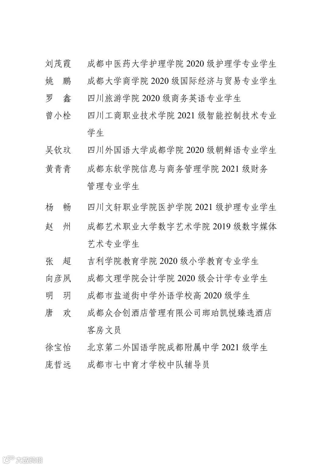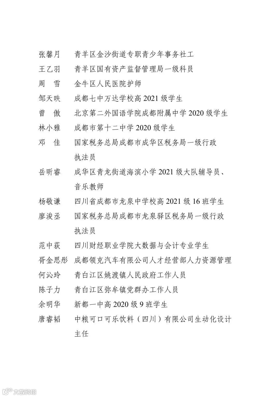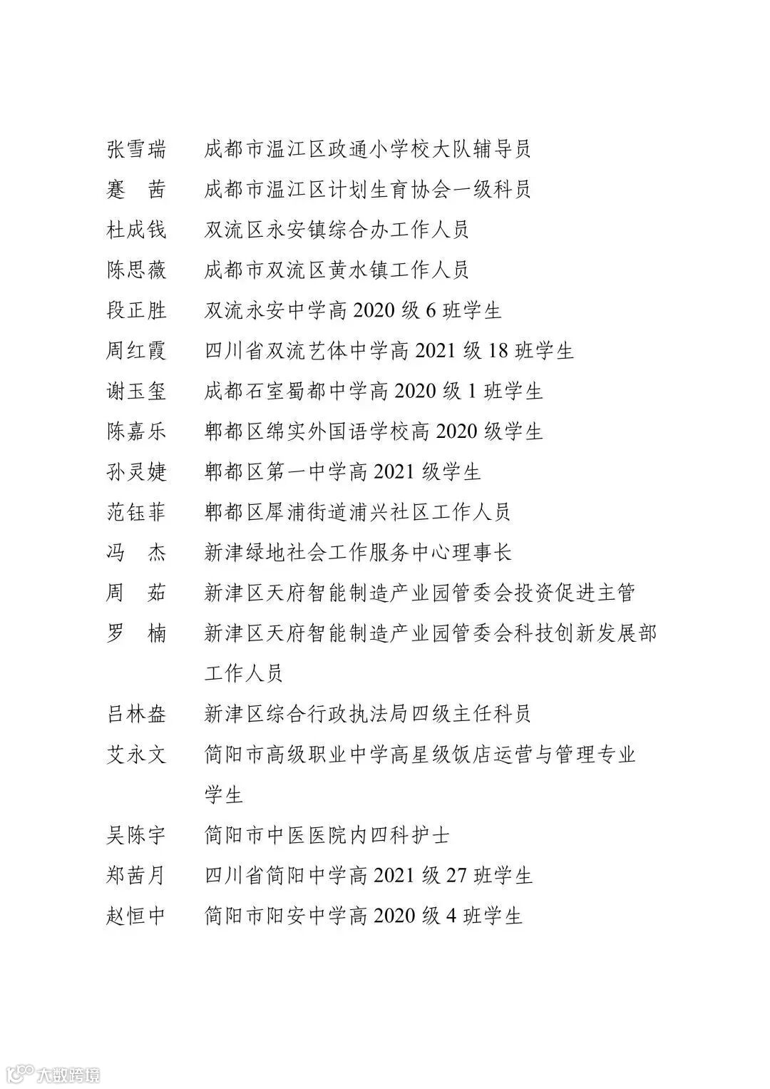 2023年“成都青年五四奖章”个人名单