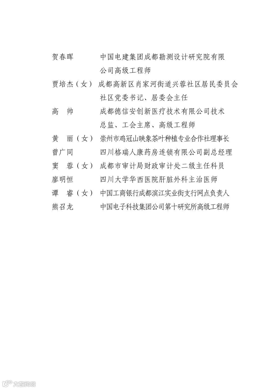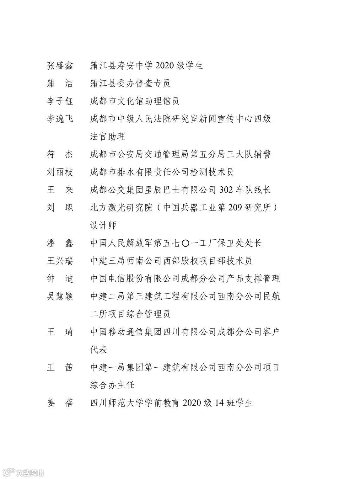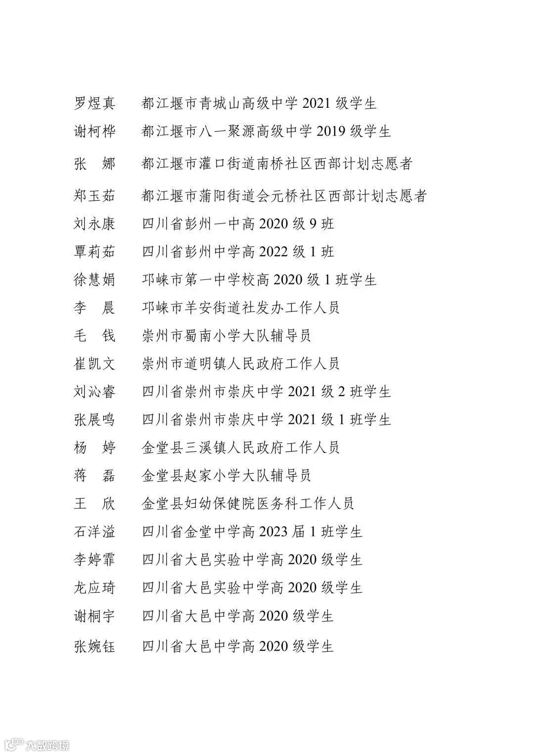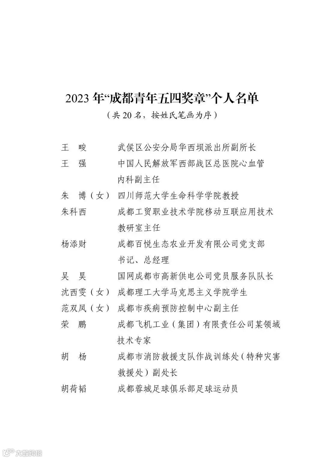 2023年“成都青年五四奖章”个人名单