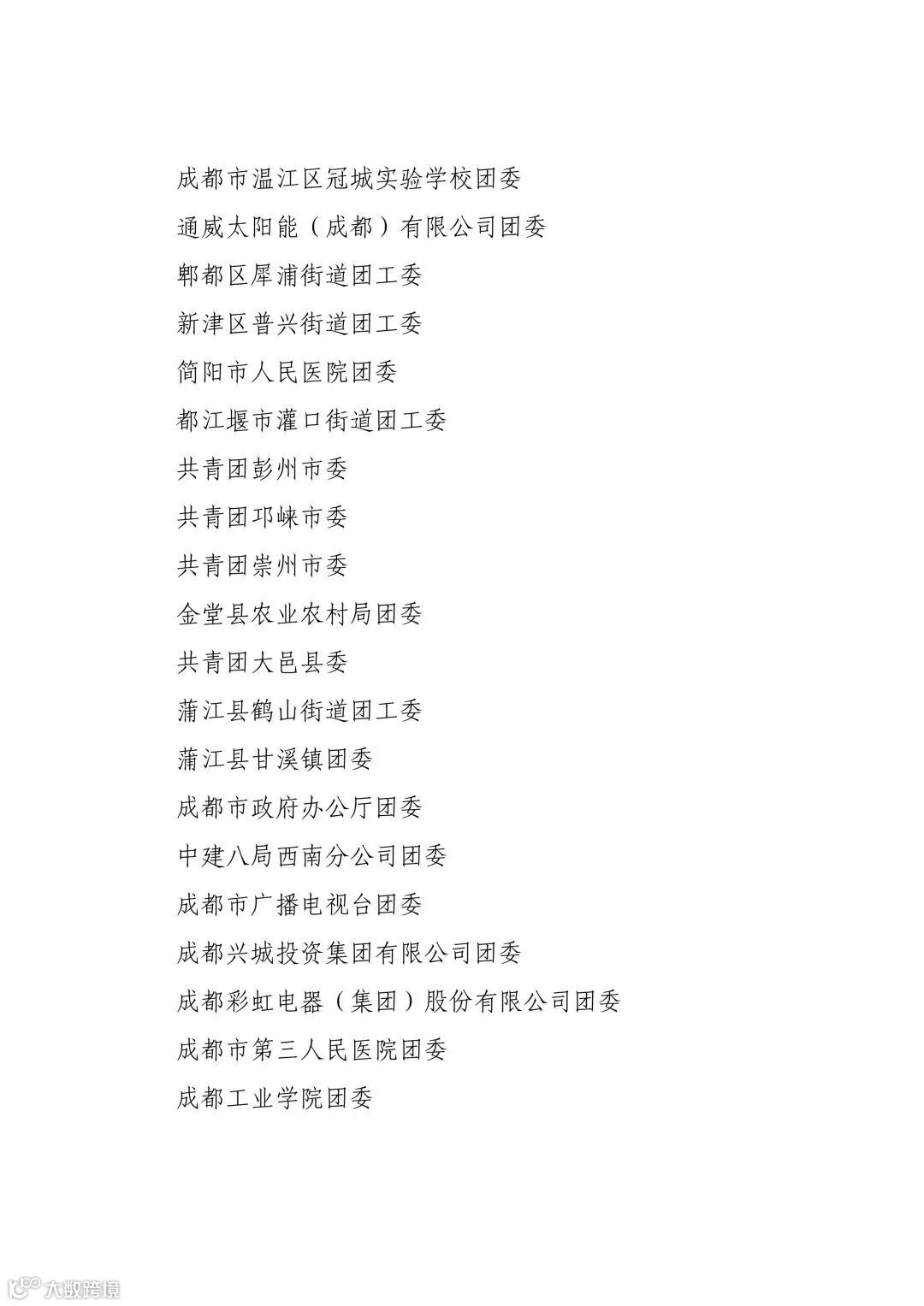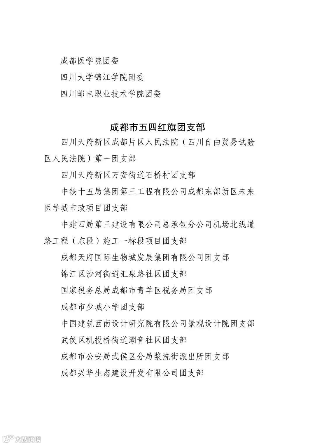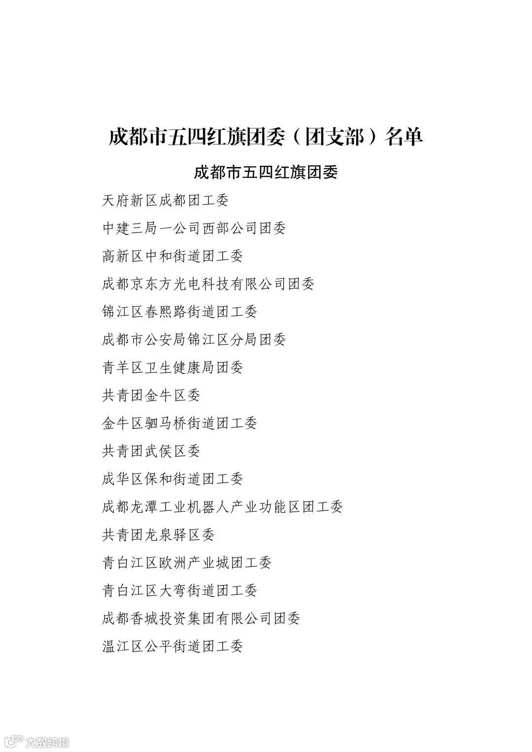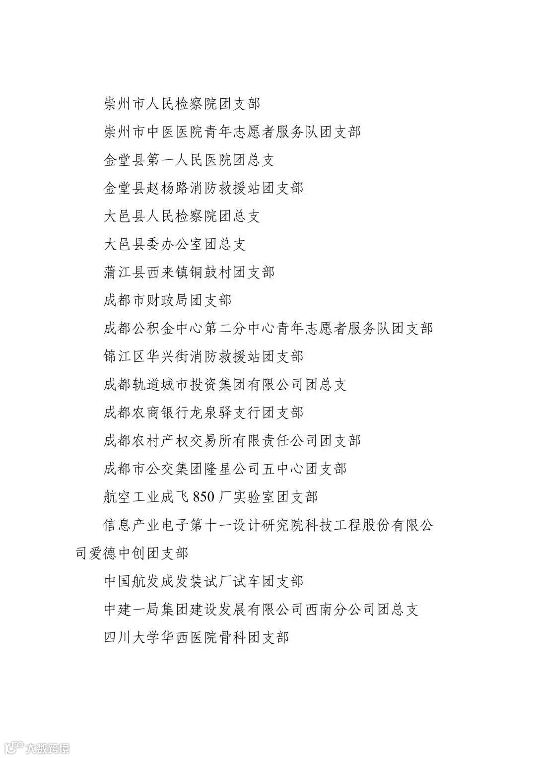 成都市五四红旗团委(团支部)名单