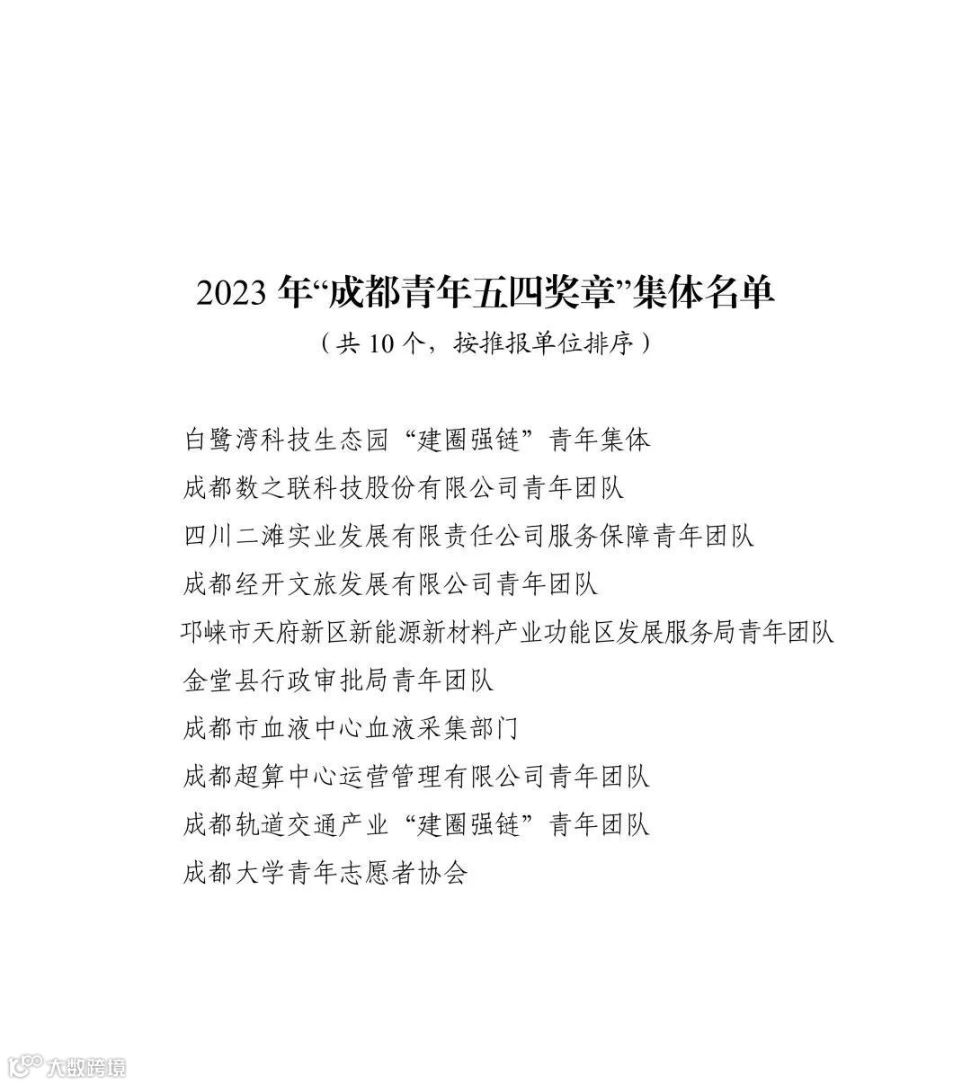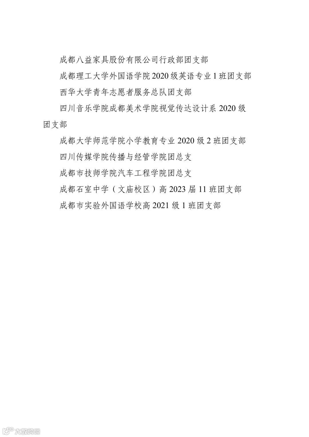 2023年“成都青年五四奖章”集体名单