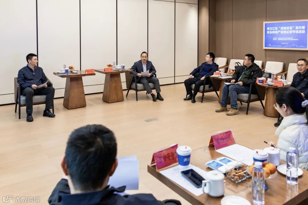 现场气氛热烈,企业代表争相发言,部门负责人边听边记,不时插话追问细节。