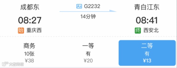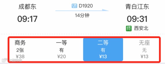 另外,目前,成绵乐客专已设置商务、一等座、二等座和无座四种客票。加密后,票源还将进一步增多。