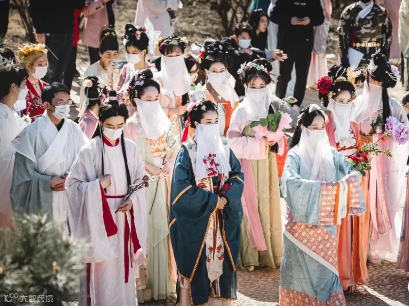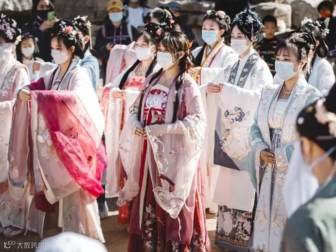 身着汉服相伴而行的国风爱好者