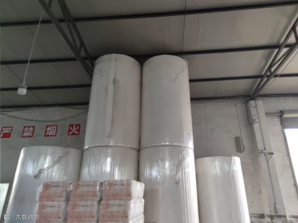 【隐患问题】:1.室外疏散通道堆放纸制品,通道堵塞;2.卷纸加工车间原材料堆放顶距不足。