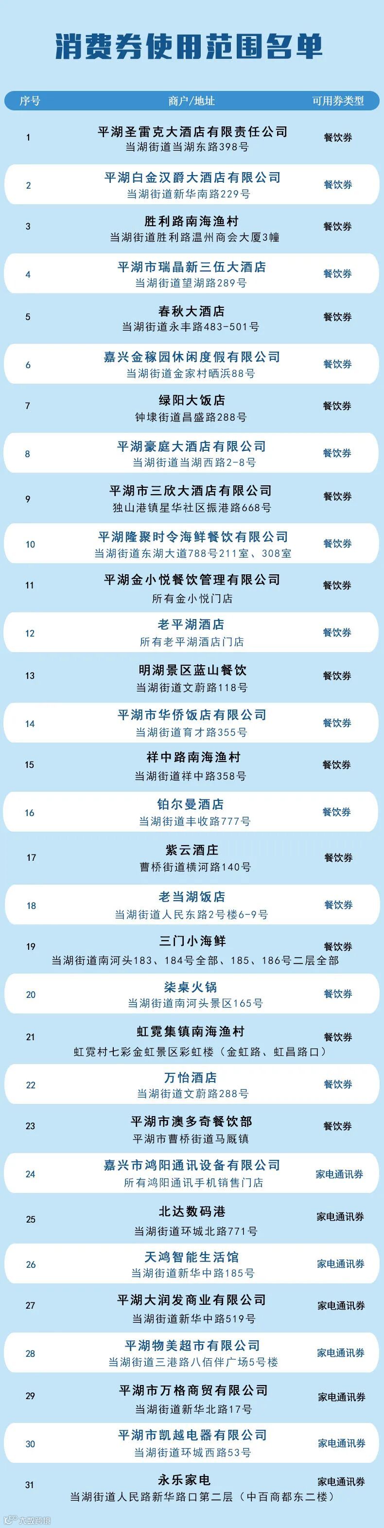 消费券使用范围名单