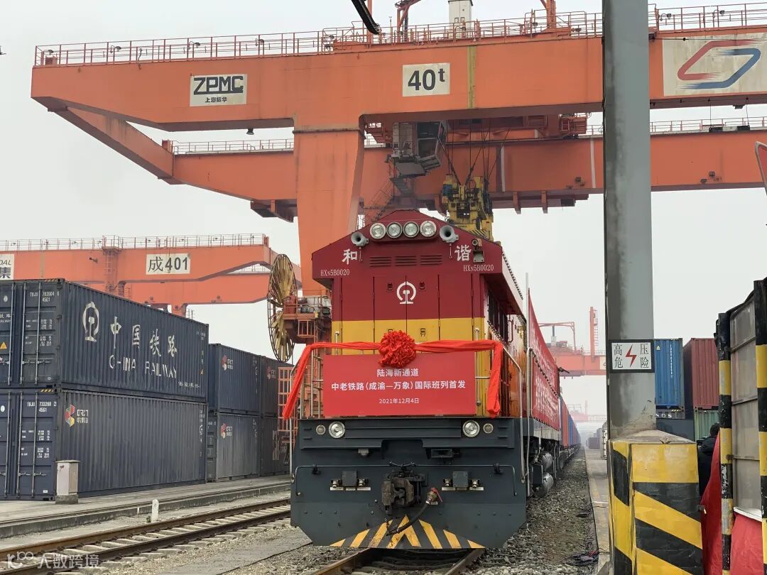 ↑陆海新通道中老铁路(成渝—万象)国际货运班列