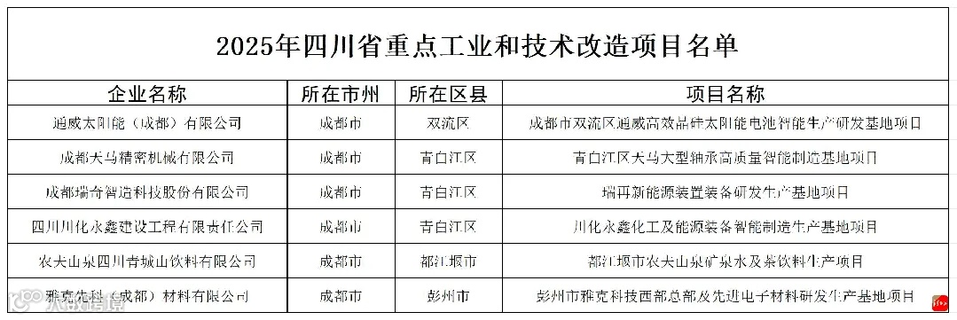 近日记者获悉,青白江3个项目进入四川省2025年500个重点工业和技术改造项目名单,分别是天马大型轴承、瑞再新能源、川化永鑫化工。
