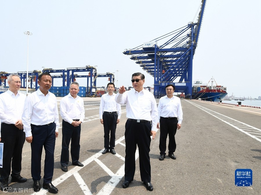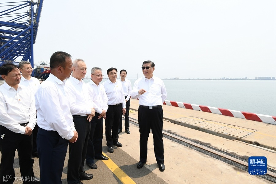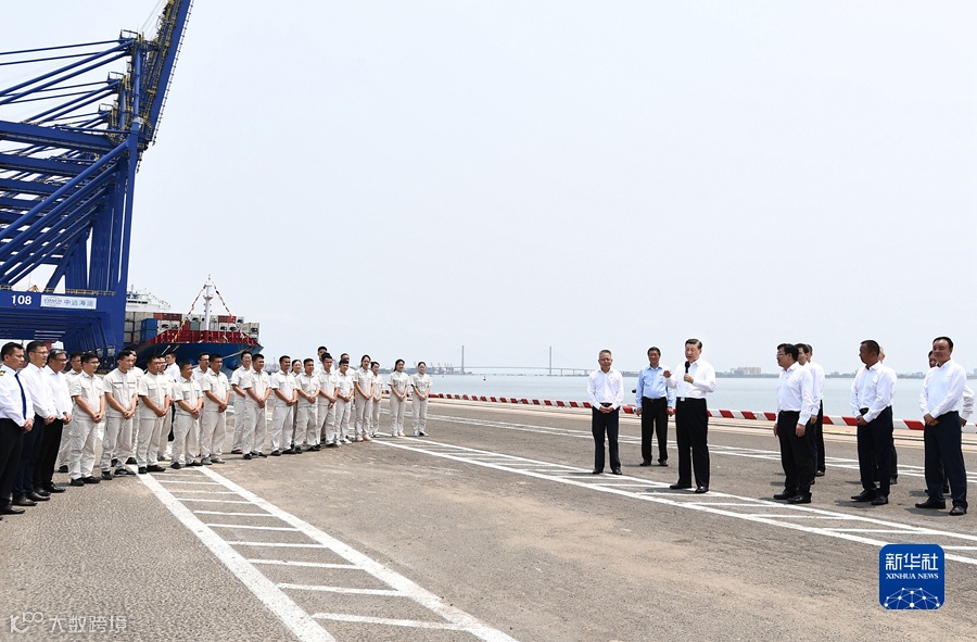 ▲ 4月10日至13日,中共中央总书记、国家主席、中央军委主席习近平在海南考察。这是12日上午,习近平在洋浦国际集装箱码头小铲滩港区考察。新华社记者 谢环驰 摄