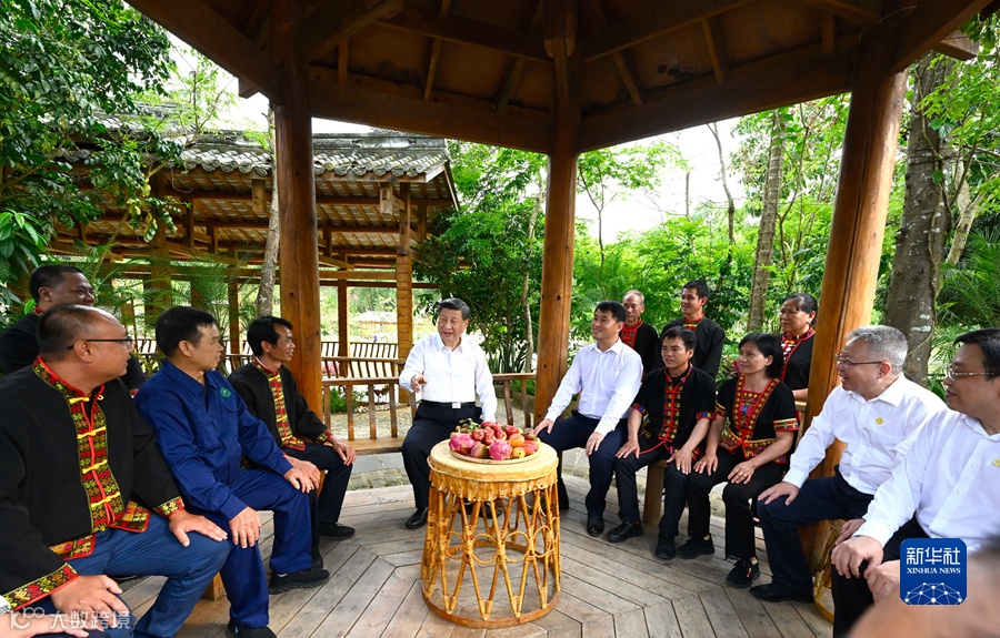 ▲ 4月10日至13日,中共中央总书记、国家主席、中央军委主席习近平在海南考察。这是11日下午,习近平在五指山市水满乡毛纳村,同黎族村民王柏和一家亲切交谈。新华社记者 谢环驰 摄