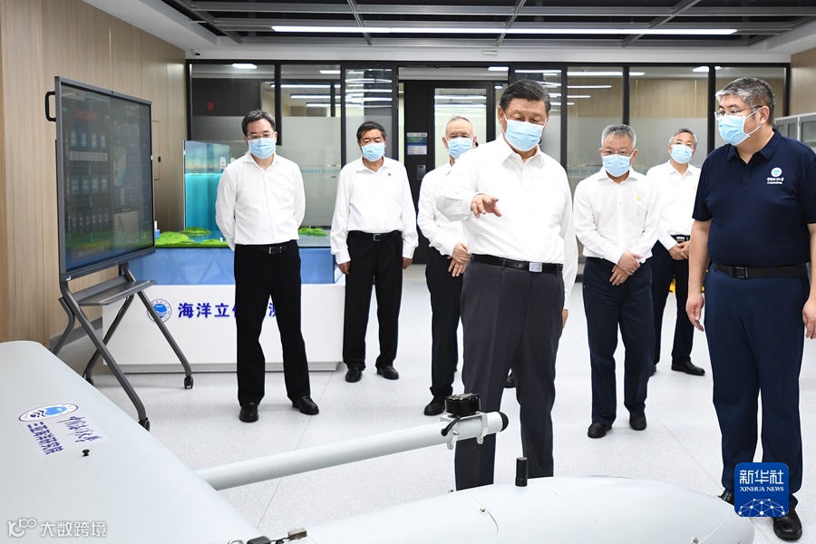 ▲ 4月10日至13日,中共中央总书记、国家主席、中央军委主席习近平在海南考察。这是10日下午,习近平在中国海洋大学三亚海洋研究院考察。新华社记者 燕雁 摄