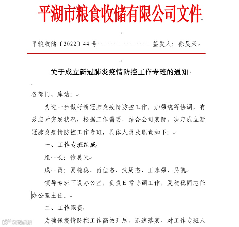 严格执行防疫要求,对标“无疫机关”,全面创建“无疫企业”。成立新冠疫情防控工作专班,制定具体工作方案,实施疫情防控“十条”工作制度,召开全体职工大会传达工作要求,落实制度防线。