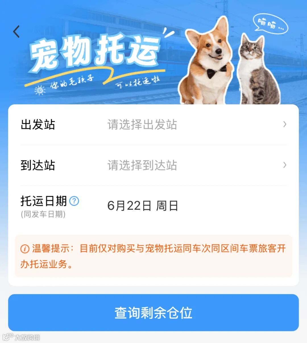 扩大试点范围后,高铁宠物托运服务继续执行“人宠同出发、同到达”规则,预约方式、受理流程、服务项点、价格标准等保持不变。旅客可通过铁路12306客户端“宠物托运”功能查询对应车次,购买车票并线上预约同车托运宠物服务。预约成功后,旅客在乘车前按约定时间携带宠物及购票使用的有效身份证件、《动物检疫合格证明》,前往出发高铁车站的中铁快运营业部办理托运手续。抵达目的地车站后,旅客根据短信或电话提示领取宠物。针对夏季气候炎热的特点,铁路部门将加强高铁快运柜、宠物箱消毒清洁,强化全过程安全管控,持续提升高铁宠物托运服务品质。