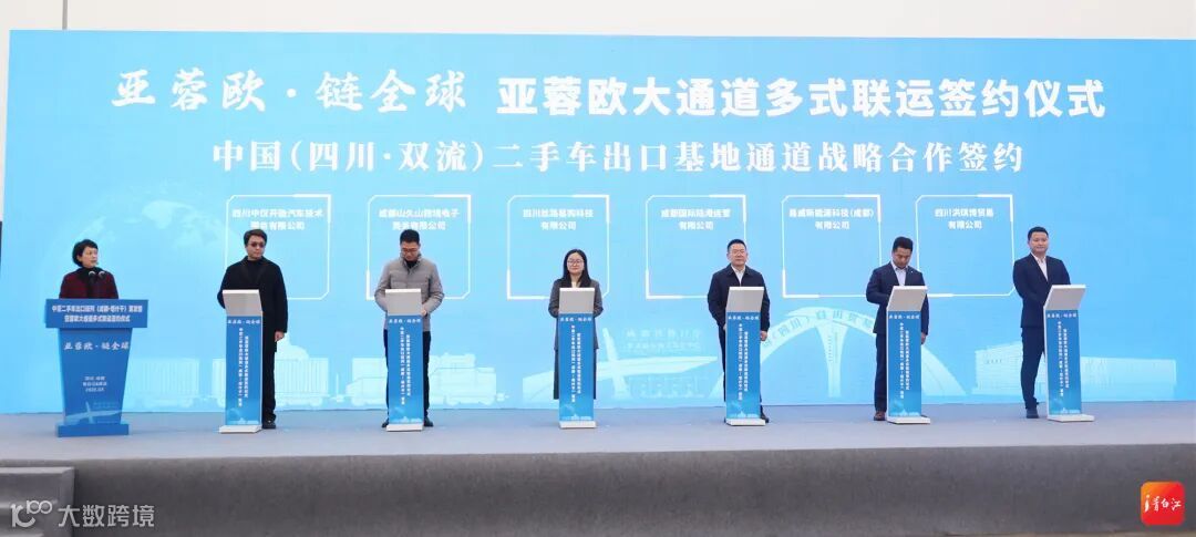 3月11日,“亚蓉欧·链全球”中亚二手车出口班列(成都—塔什干)首发暨亚蓉欧大通道多式联运签约仪式在成都集装箱中心站举行,标志着青白江区与双流区通过“区区联合”模式,整合铁路口岸枢纽优势与二手车出口产业,为“蓉品出海”开辟了高效稳定的国际物流通道,实现了物流与产业的深度融合、优势互补,为二手车产业发展注入新活力。