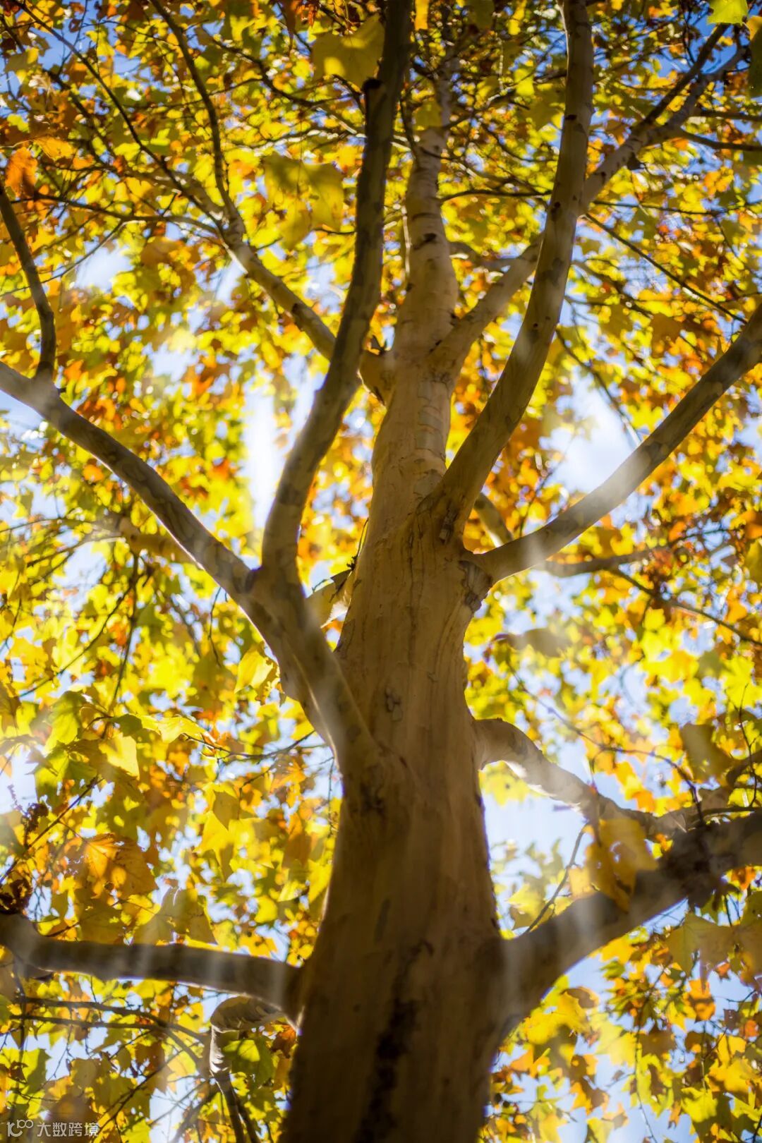 金黄的树叶在阳光下熠熠生辉