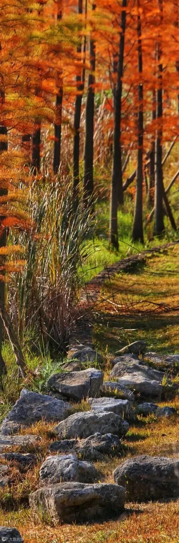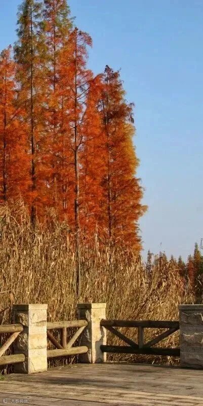 水杉、小桥、流水