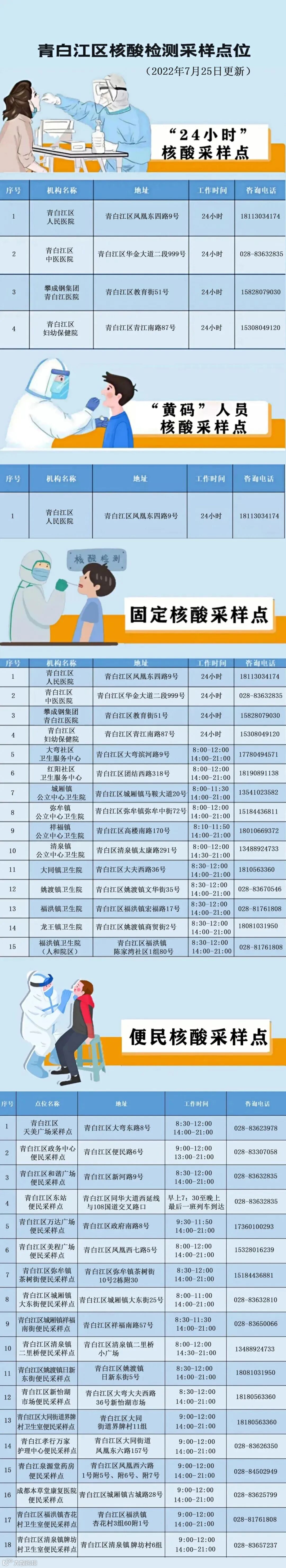 愿检尽检丨青白江区核酸检测采样点服务时间延长至21:00(附最新检测点位信息)