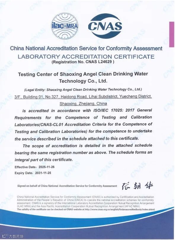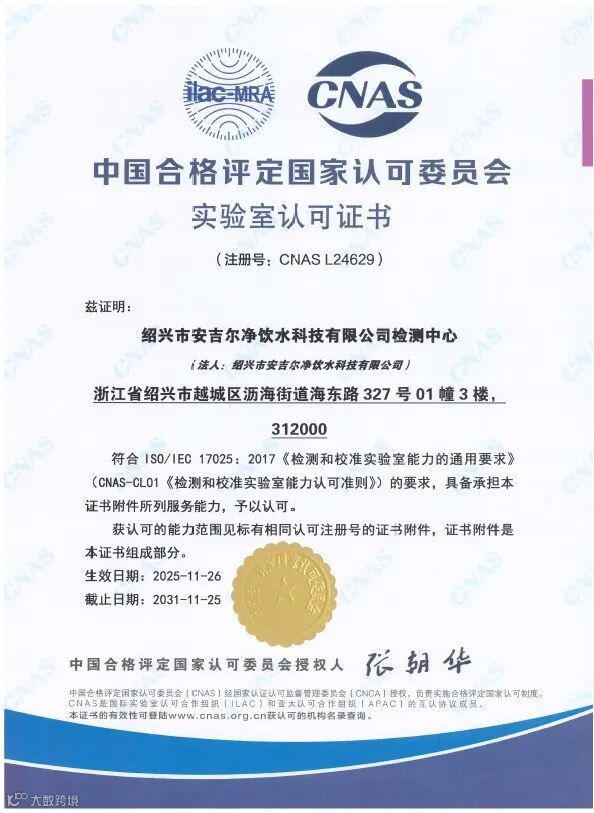检测能力不再只是生产的后端环节,而是产品研发、工艺改进、质量追溯的重要支撑。获得CNAS认可,意味着公司能够更快速、更权威地响应市场需求、开展技术创新,在净饮水行业树立起更专业、更可信的品牌形象。