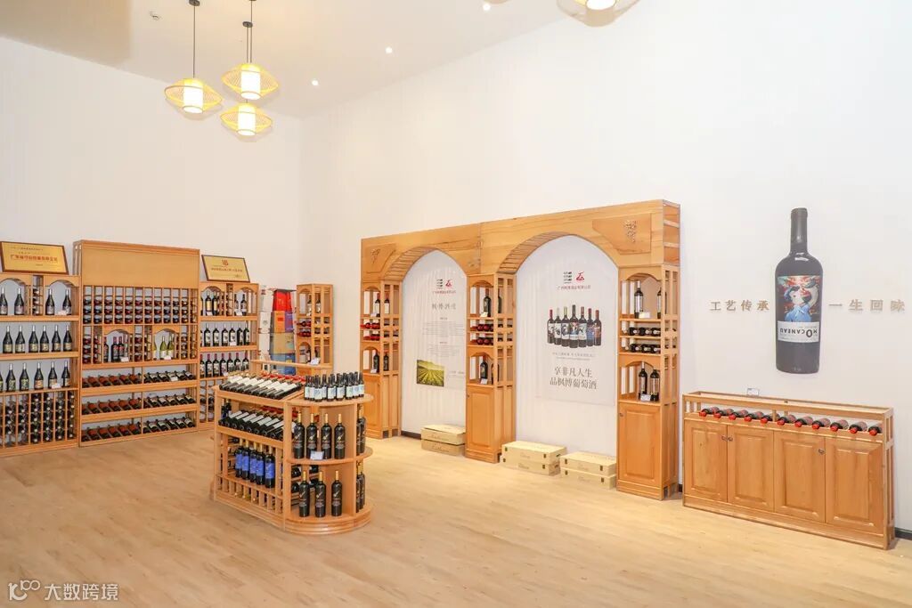 法国商品展示馆展览了法国特色商品,馆内设计了特色古堡风格酒窖,陈列了许多来自法国酒庄的高品质红酒。