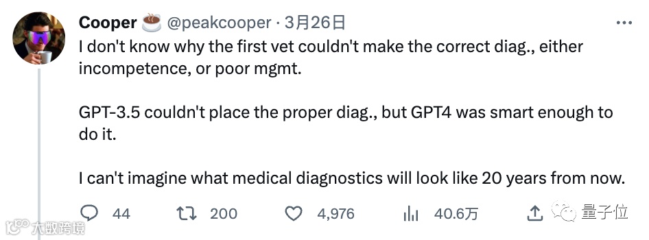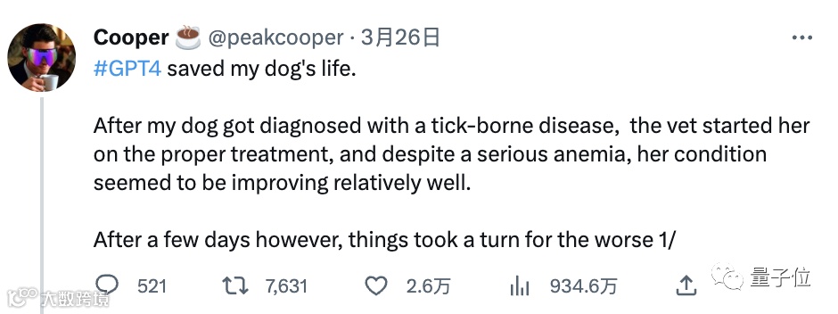 这两天,一篇关于“GPT-4救了我狗的命”的帖子属实有点火: