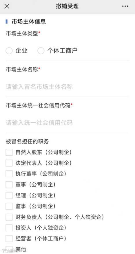 4.被冒名担任的职务:公司可选自然人股东、法定代表人、执行董事、董事、经理、监事、财务负责人;个人独资企业可选投资人、财务负责人;个体工商户可选经营者。担任的其他职务可在其他中填写。具体担任的职务可通过国家企业信用信息公示系统(四川)查询。
