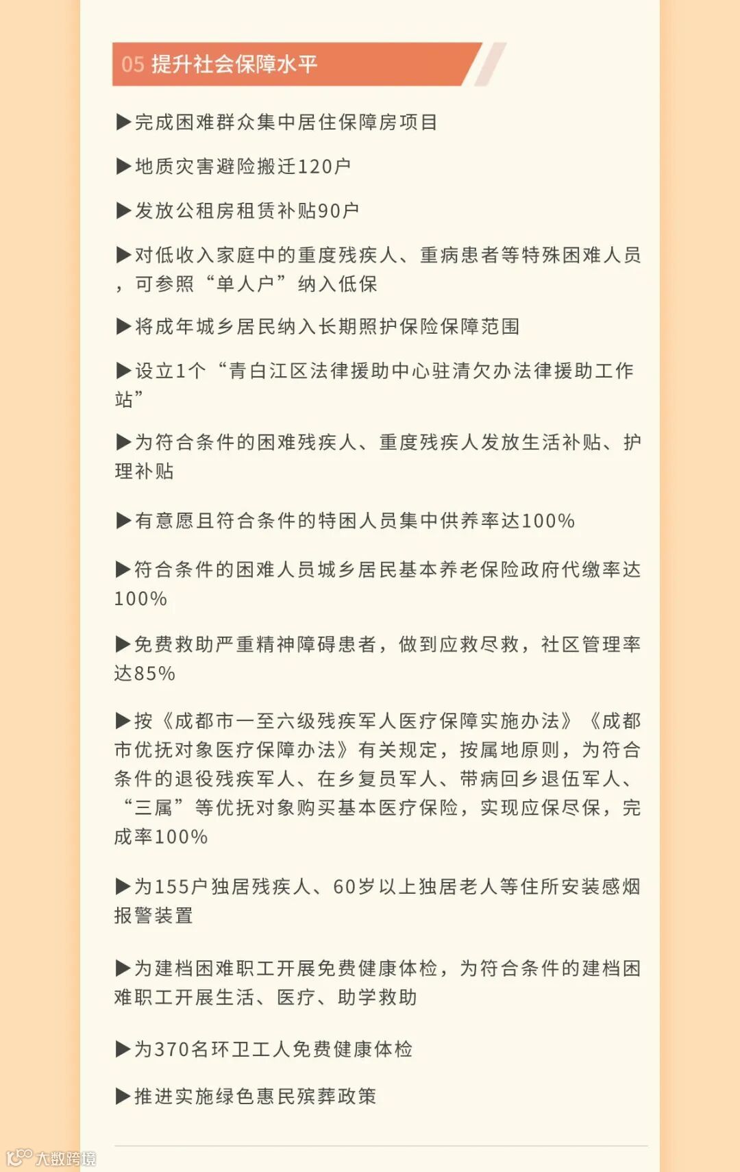 社会保障、教育助学、医疗养老、文体惠民、