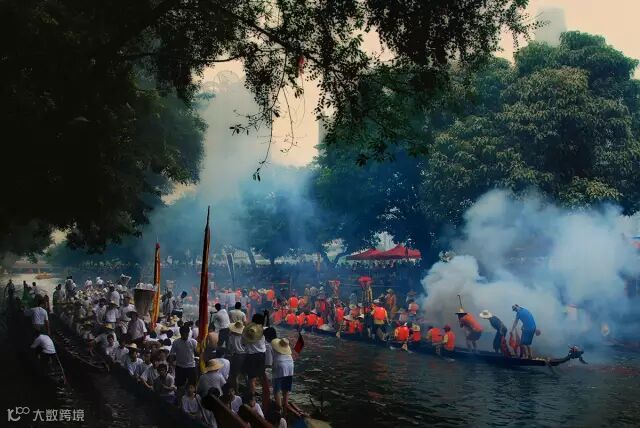 赛龙舟是南方端午节的重要习俗。相传人们因不舍屈原投江死去,借划龙舟驱散江中之鱼,以免鱼吃掉屈原躯体,追至洞庭湖时不见踪迹。