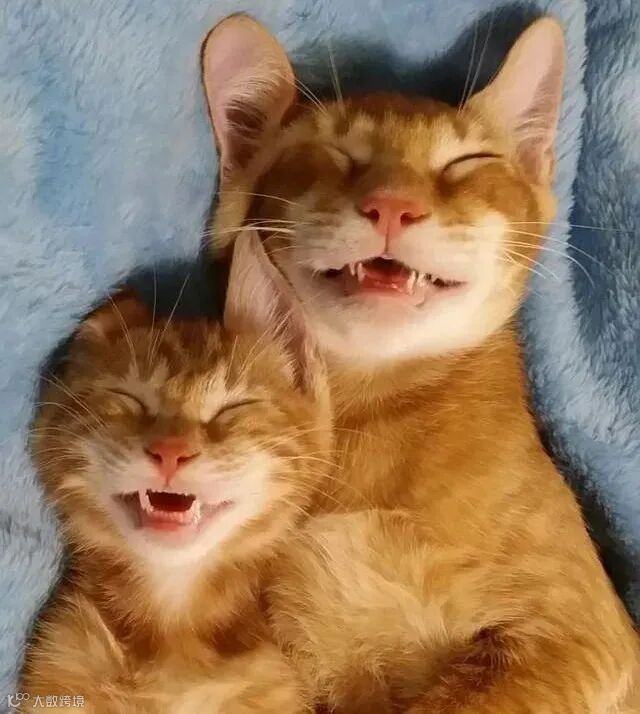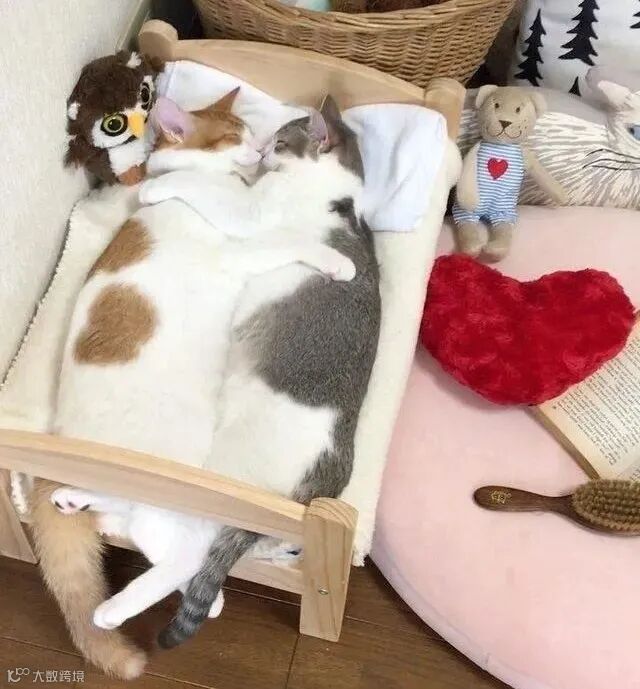 关系好的猫咪,喜欢采用恩爱式的睡姿,睡觉也抱在一起。