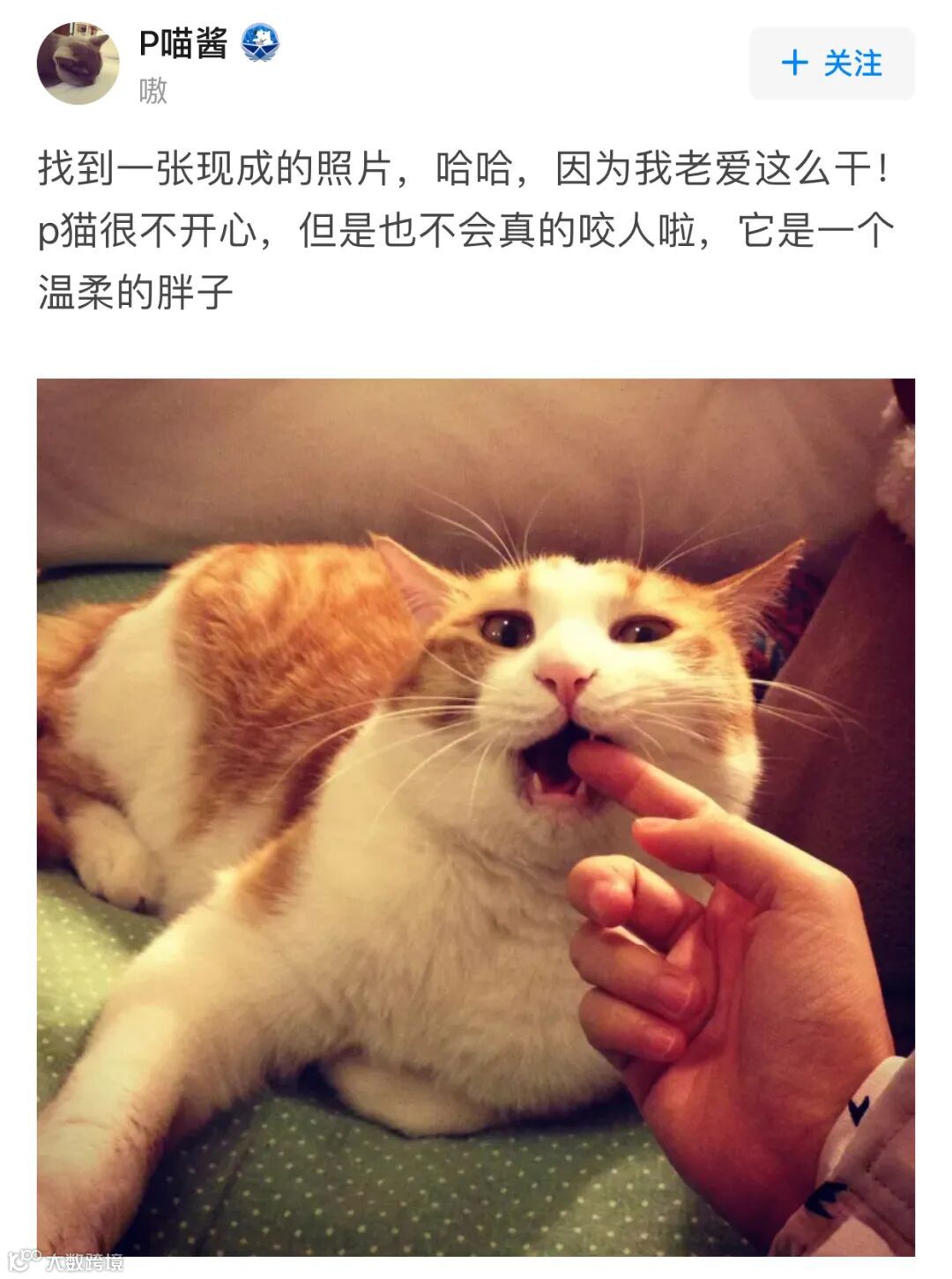 居然直接把手指放在猫咪的嘴里