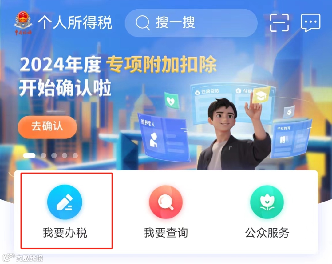 第一步,登录个人所得税APP,点击【我要办税】。