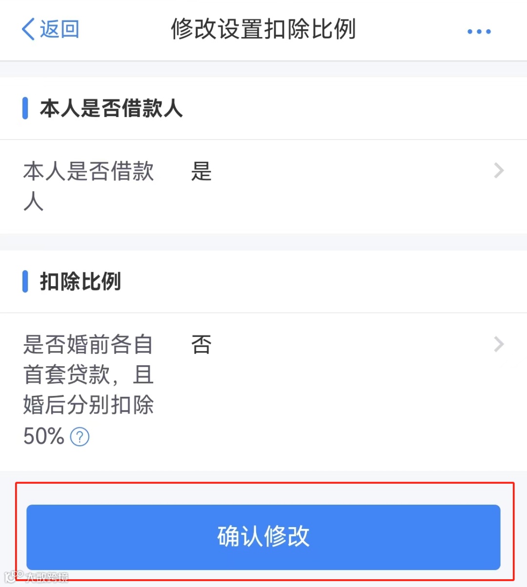 第六步,选择正确的扣除比例,点击【确认修改】,就修改完成了。