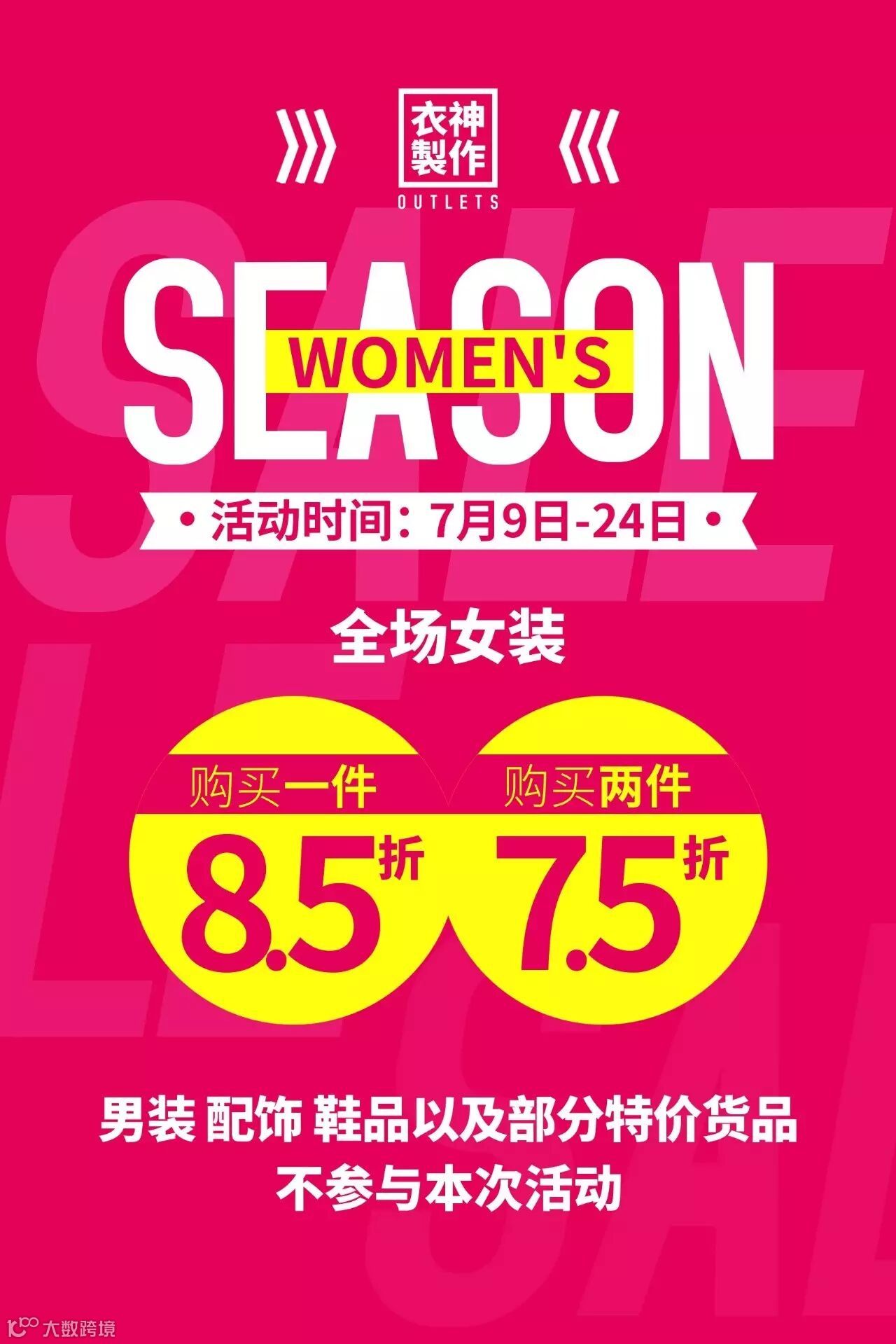 特推出【全场女装】一件8.5折,两件7.5折