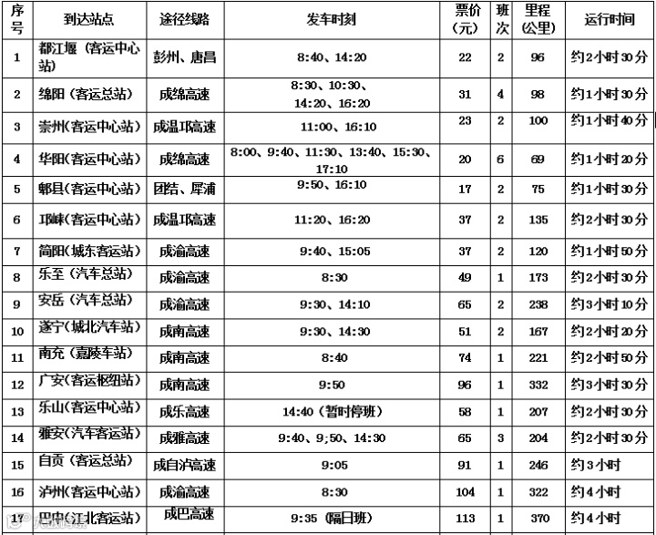 6、可关注青白江区综合客运枢纽站、四川汽车票务网查询购票。咨询服务电话:028-83694949服务质量投诉电话:028-83690929