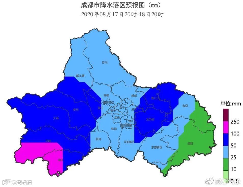 彭州、都江堰、崇州、大邑、邛崃、蒲江的部分地方有大暴雨