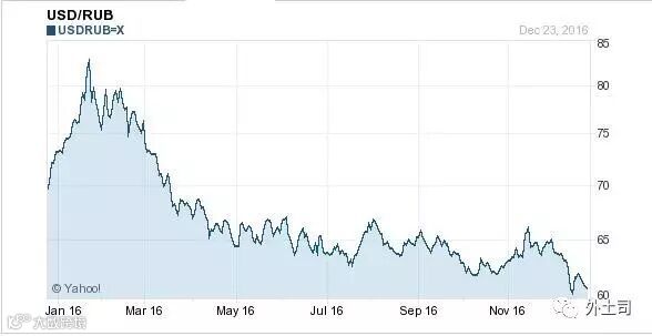 2016年1月1日,美元对俄罗斯卢布的汇率是72.9298,截至今天的汇率是62.1903,升值109395个基点,升值幅度15%。