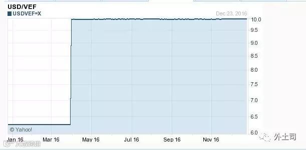2016年1月1日,美元对玻利瓦尔的汇率是6.2842,截至今天的汇率是9.9748,贬值36906个基点,贬值幅度达58.71%。