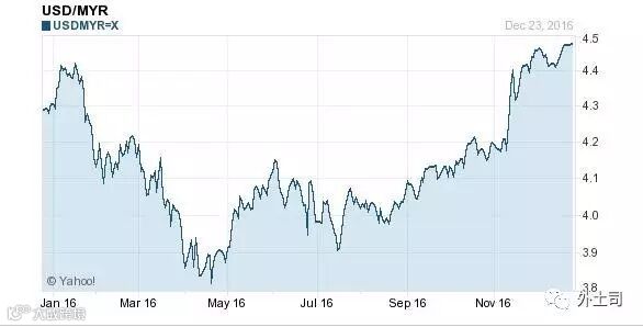 2016年1月1日,美元对林吉特的汇率是4.2920,截至今天的汇率是4.4800,贬值1880个基点,贬值幅度4.38%。