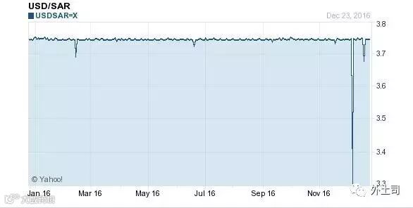 还有一个土豪国家-沙特,它们的汇率曲线是这样的。